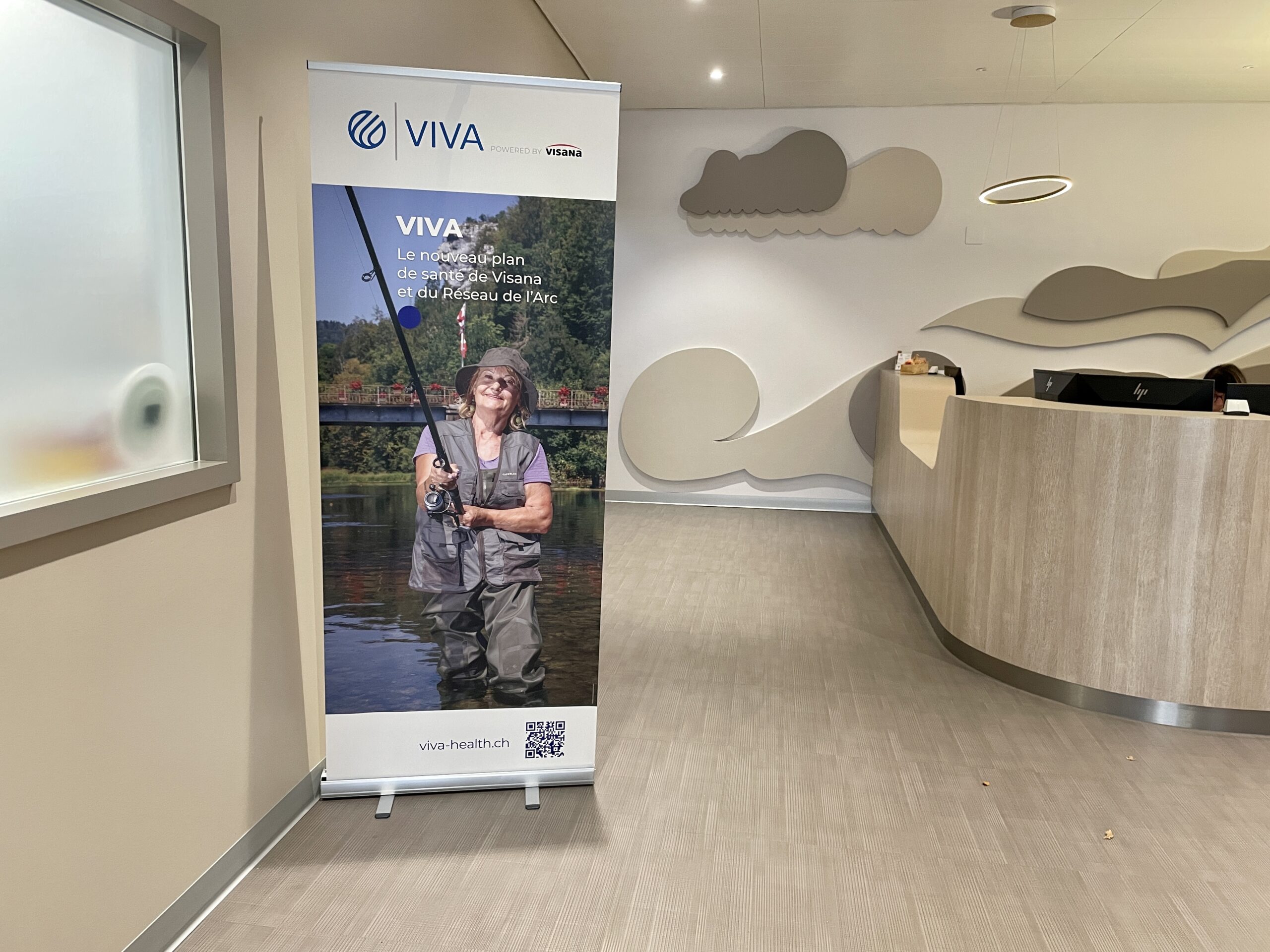 Roll-up, comptoir, stand d’expo et autres supports publicitaire VIVA pour les Hôpitaux du Jura bernois.